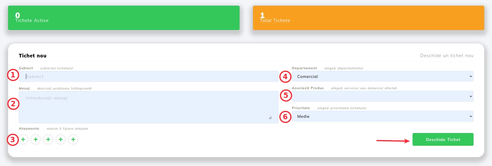 3. Atașamente - faceți clic pe semnul plus (+) dacă doriți să atașați o imagine, document, fișier;