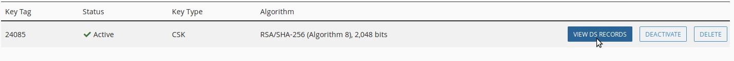 - Nella finestra successiva, troveremo le chiavi necessarie per configurare DNSSEC nel pannello del registrar.
