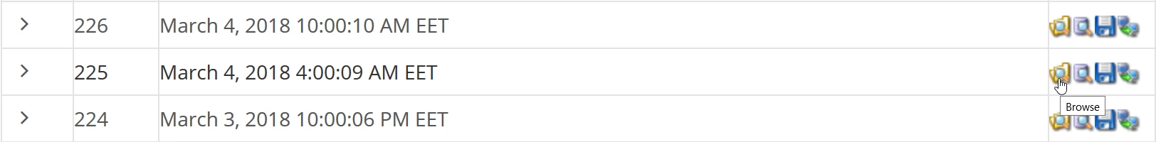 - Come per il ripristino dei file, sceglieremo la data desiderata, ma questa volta cliccheremo sul simbolo