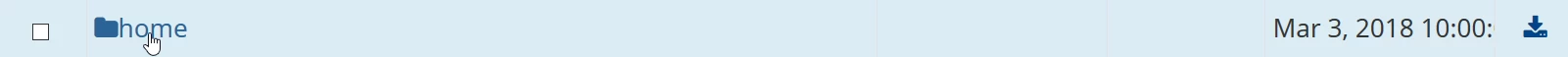 - Il punto di ripristino selezionato sarà aperto. Qui possiamo esplorare una copia dei file dalla data scelta. Cliccheremo su home per entrare nella cartella principale dell'account di hosting.