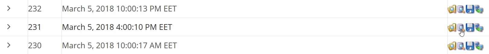 - Come esempio, ripristineremo l'intera cartella public_html dell'hosting. Selezioneremo la data desiderata e cliccheremo sul pulsante con il simbolo