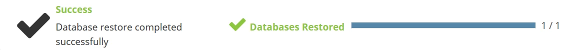- Il tempo di ripristino varia a seconda delle dimensioni del database. Al termine, verrà visualizzato un messaggio di successo.